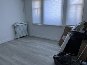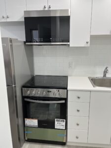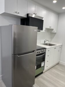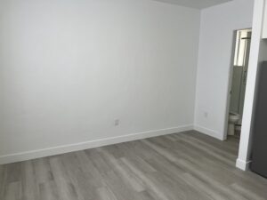 This fully renovated studio apartment features new appliances, including a gas stove and oven, new flooring, and an updated bathroom.