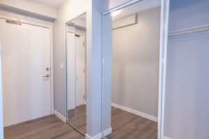 The modern kitchen is complemented by updated countertops and finishes, while the private balcony provides a perfect space to relax. The bedroom offers ample space and functionality, making this home ideal for individuals or couples seeking both comfort and convenience.