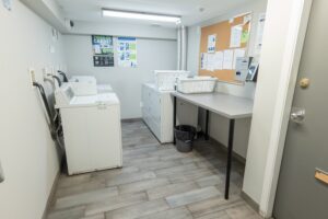 Residents benefit from shared laundry facilities, secure entry with an enter phone and fob system, and the presence of an on-site caretaker. Gated underground parking is available for an additional $30 per month, along with ample street parking nearby.