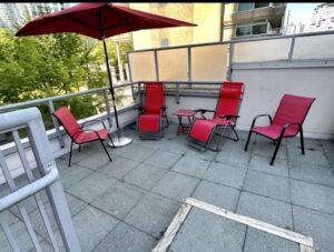 Located in Coal Harbour, steps away from restaurants, shopping, the marina, and everything downtown has to offer, the Palladio is an exceptional place to be. This unique two storey, 1 bedroom, 1.5 bath townhouse features hardwood flooring in all living areas with high ceilings and a loft-style living space with roof top patio and private backyard.