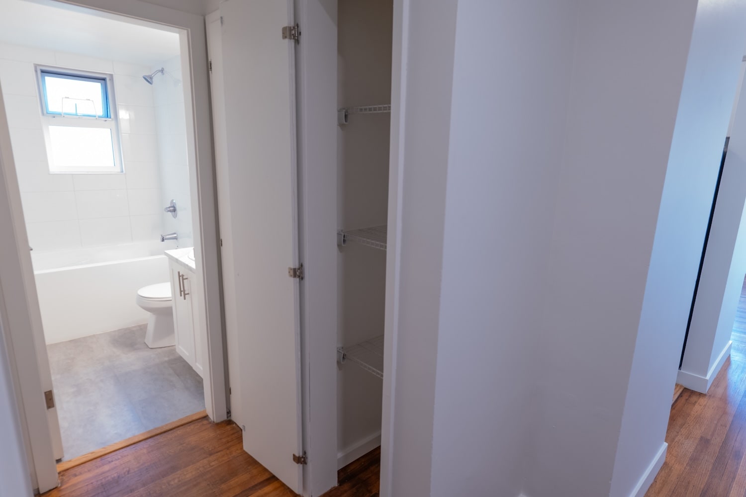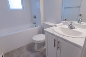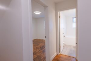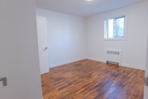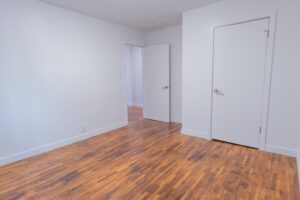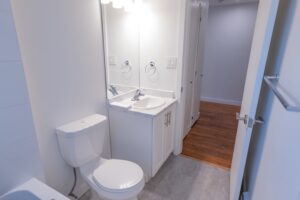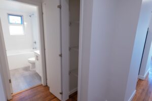 The spacious bedroom provides ample closet space for all your storage needs, while the bright and functional layout creates a warm and inviting atmosphere throughout the suite.